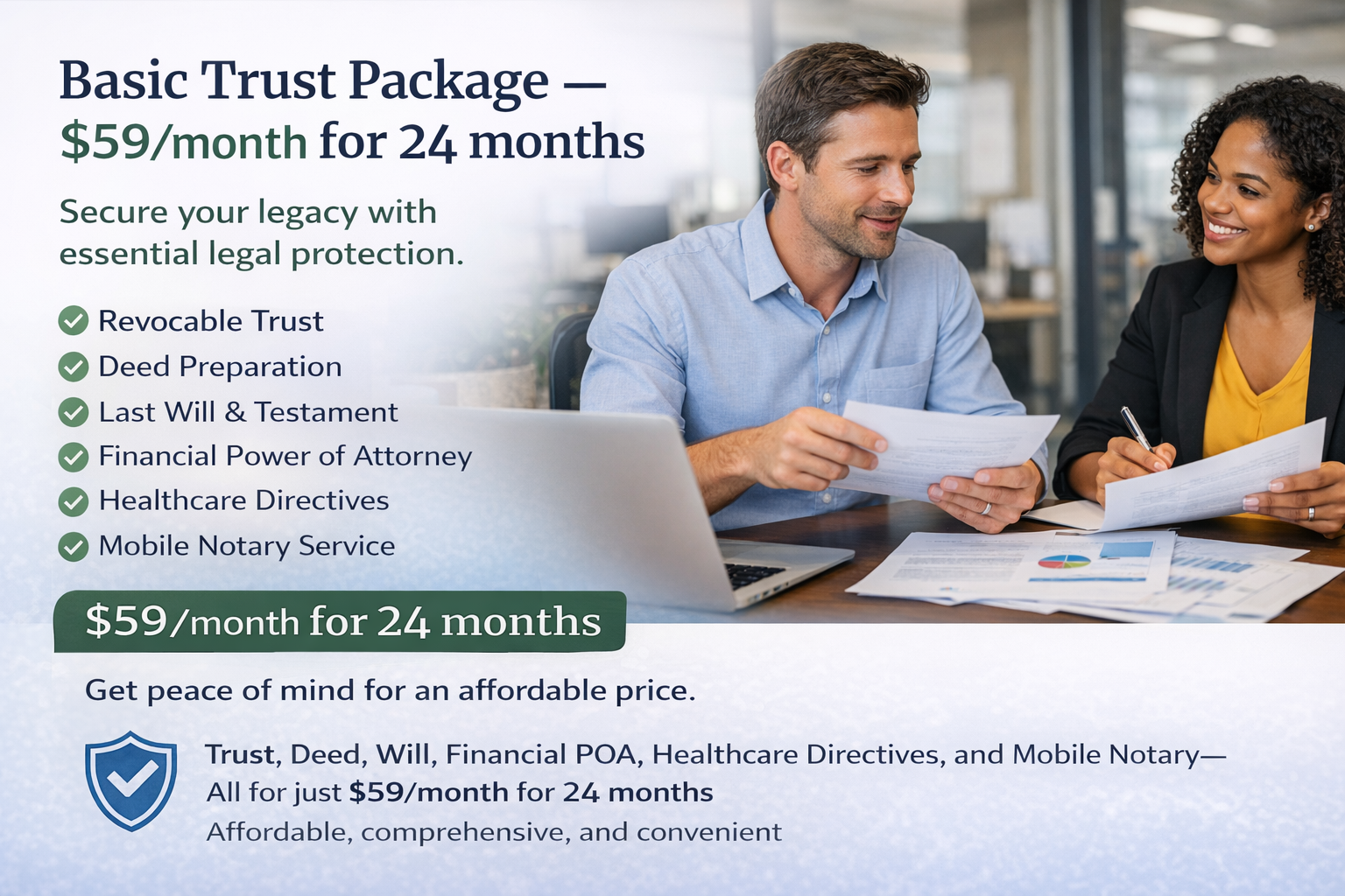Ensure your loved ones are protected and your wishes honored with our comprehensive estate planning package. Our simple living trust the essential documents you need for complete peace of mind.